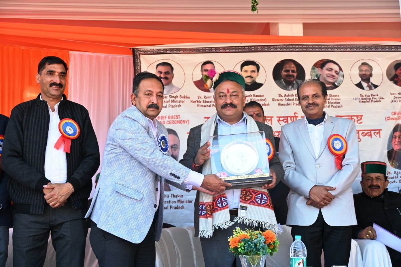 शिक्षा मंत्री ने संस्थान के इतिहास पर भी प्रकाश डाला, उनके दादा ठाकुर रामलाल 9 बार विधायक, 3 बार मुख्यमंत्री और राज्यपाल रहे और खेलों में भी सक्रिय रहे। इसी तरह जुब्बल में 17 करोड़ रुपये की लागत से शिक्षक प्रशिक्षण संस्थान बनाया जा रहा है, इसके अलावा, आईटीआई जुब्बल का नया भवन नवम्बर में जनता को समर्पित किया जाएगा। इस अवसर पर निदेशक स्कूल शिक्षा विभाग आशीष कोहली, एसडीएम जुब्बल गुरमीत नेगी, तहसीलदार जुब्बल जितेंद्र ठाकुर, स्थानीय स्कूल के प्रधानाचार्य केशव शर्मा, कमांडेंट राजपाल नेपटा, पूर्व जिला परिषद सदस्य मोतिलाल सिथटा और अन्य गणमान्य व्यक्ति उपस्थित रहे।