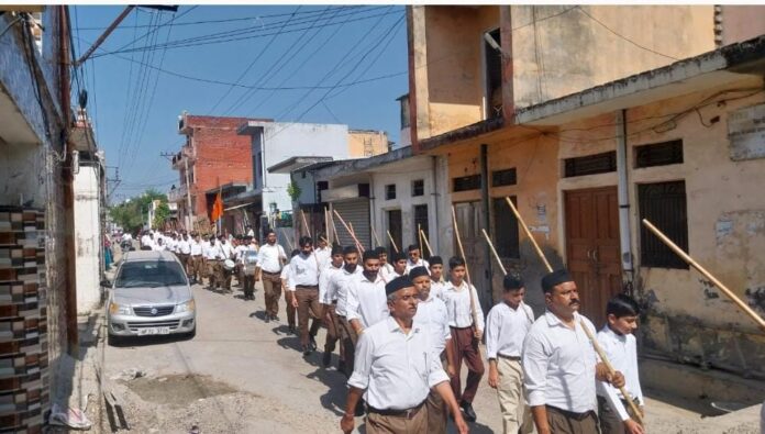 राष्ट्रीय स्वयंसेवक संघ के शताब्दी वर्ष पर मैहतपुर में निकला भव्य पथ संचलन
