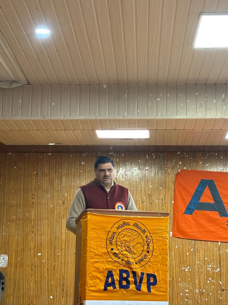 शिमला। अखिल भारतीय विद्यार्थी परिषद हिमाचल प्रदेश द्वारा प्रदेशभर में एबीवीपी के प्रखर नेता एवं विचारक स्वर्गीय सुनील उपाध्याय की पुण्यतिथि पर एक विशेष संगोष्ठी आयोजित की गई। यह कार्यक्रम विश्वविद्यालय के साइंस हॉल में संपन्न हुआ, जिसमें बड़ी संख्या में विद्यार्थी, शिक्षक और कार्यकर्ता उपस्थित रहे। इस कार्यक्रम का शुभारंभ दीप प्रज्वलन के साथ हुआ। एबीवीपी इकाई अध्यक्ष अक्षय ठाकुर ने स्व. सुनील उपाध्याय के जीवन, विचारों और राष्ट्रवादी दृष्टिकोण पर प्रकाश डाला। उन्होंने बताया कि उपाध्याय ने अपने जीवन में विद्यार्थी राजनीति को समाज और राष्ट्र सेवा से जोड़ा और युवाओं में नेतृत्व एवं राष्ट्रीय पुनर्निर्माण के लिए प्रेरणा दी।