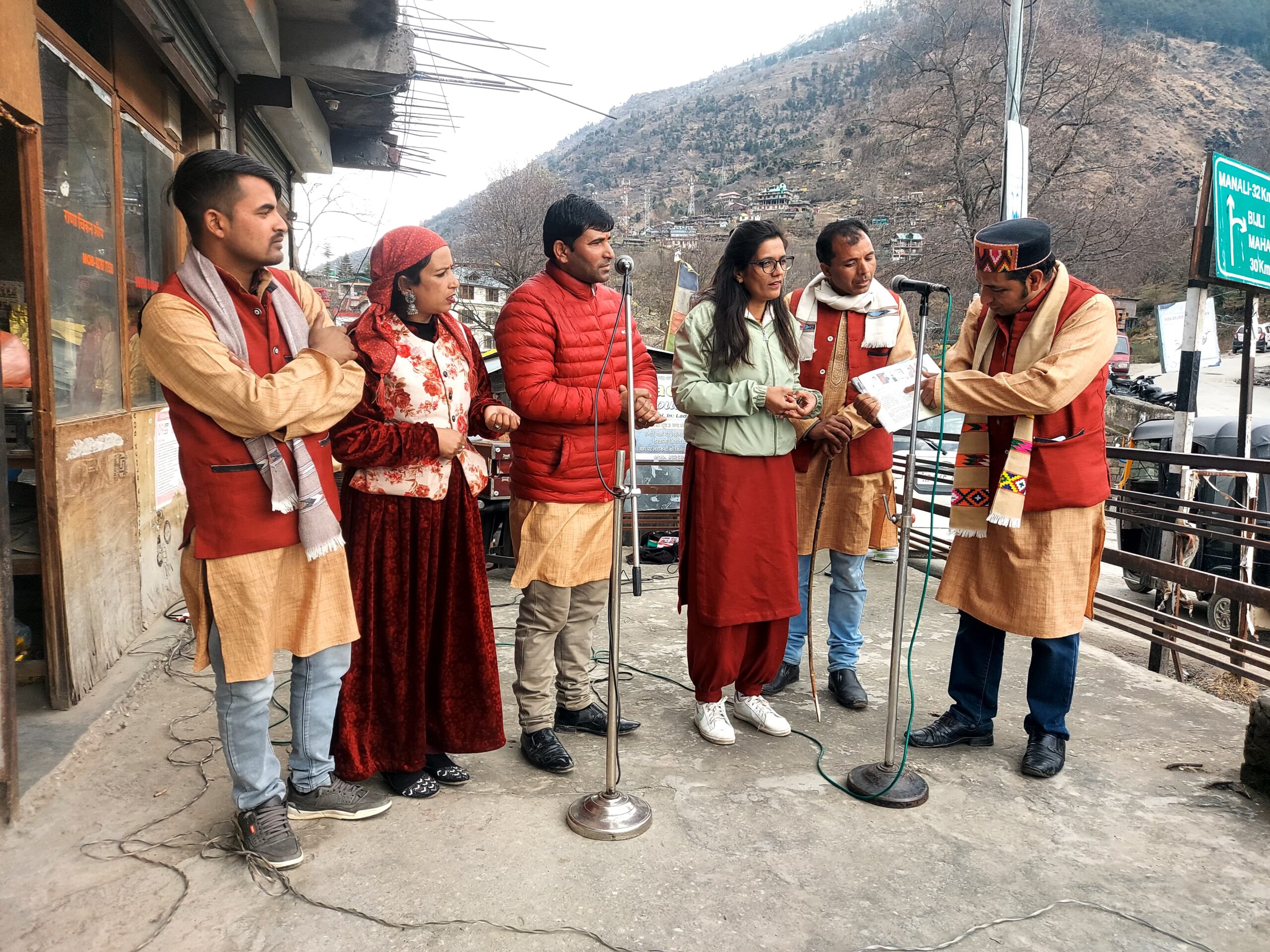 शिमला। हिमाचल प्रदेश सरकार के एक साल की जनकल्याणकारी नीतियों,योजनाओं और उपलब्धियों को लेकर फोक मीडिया के माध्यम से जनमानस में जागरूकता के लिए सूचना एवं जनसंपर्क विभाग के साथ संबद्ध निजी सांस्कृतिक दलो द्वारा गीत-संगीत व नुक्कड़ नाटकों की प्रस्तुतियों से लोगों को विभिन्न योजनाओं के अलावा नशे के दुष्प्रभावों से भी अवगत करवाया जा रहा है।