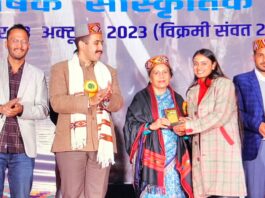 विक्रमादित्य सिंह ने “कुल्लू की स्वर कोकिला” नाम देकर किया पंडित ख़ुशबू को सम्मानित