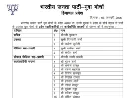 युवा मोर्चा हिमाचल डॉ. सन्नी शुक्ला ने प्रदेश पदाधिकारियों व कार्यकारिणी की घोषणा