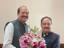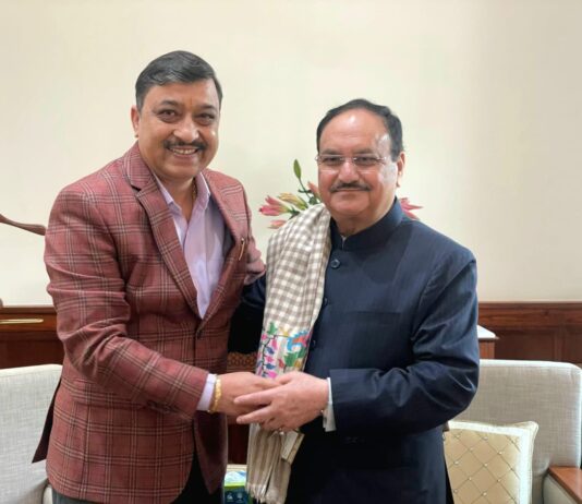 सांसद सुरेश कश्यप ने राष्ट्रीय अध्यक्ष जगत प्रकाश नड्डा से शिष्टाचार भेंट कर जन्मदिवस की भी शुभकामनाएँ दी।