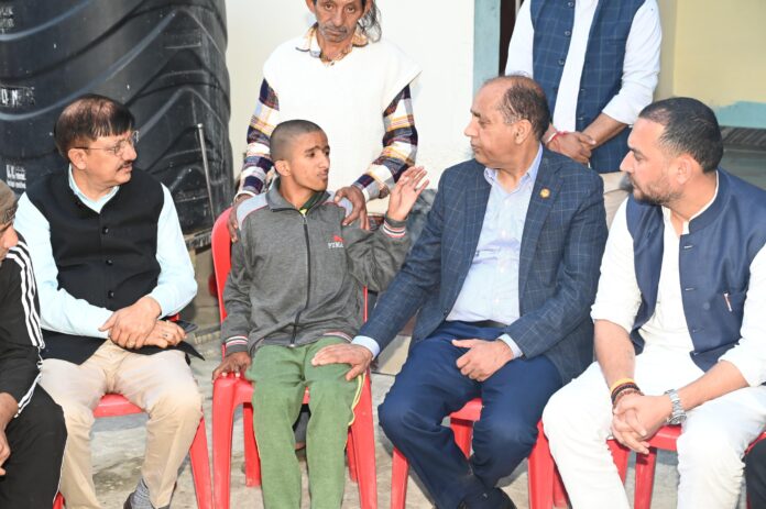 हमीरपुर। हमीरपुर विधानसभा क्षेत्र के सासन गांव पहुंचकर मुख्यमंत्री जयराम ठाकुर ने युवक के हमले में मृत महिला के परिवार से मिलकर अपनी संवेदनाएँ व्यक्त की, इस दौरान मुख्यमंत्री घायल महिला के पुत्र गोलू से भी मिले और उनके साथ भावुक क्षण साझा किए। मुख्यमंत्री ने कहा कि यह अत्यंत दुखद और निःशब्द करने वाला हादसा है। गोलू मासूम और दिव्यांग है, और उनकी मां ही जीवन का एकमात्र सहारा थीं। मुख्यमंत्री ने परिजनों को आश्वस्त किया कि सरकार इस घटना की विधिसम्मत जांच सुनिश्चित करेगी और किसी भी प्रकार की कोताही नहीं होने दी जाएगी।