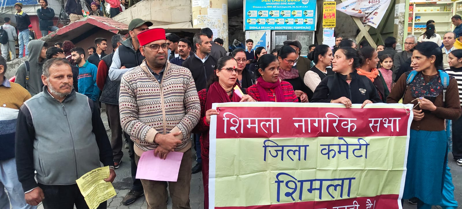 इसी तरह सभा ने कहा कि यदि प्रशासन ने जल्द इन मांगों पर कार्रवाई नहीं की, तो नागरिक सभा शिमला शहर में बड़े आंदोलन की तैयारी करेगी। इस प्रदर्शन के दौरान महेश वर्मा, सुनील वशिष्ठ, संजीव खजूरिया, नवीन, मोहन शर्मा, सुशील, कुलदीप तंवर, जितेंद्र, जसवंत, ओम प्रकाश, सत्यवान, संजू, उमा, चंपा, सुरेंद्र वर्मा, वीरेंद्र, राकेश वर्मा, सुरेंद्र स्वर्ण, सतेंद्र, प्रवेश, कृतिका, गोबिंद चीतरांटा, राजकुमार, सुहानी, आयुषी सहित कई लोग मौजूद रहे।