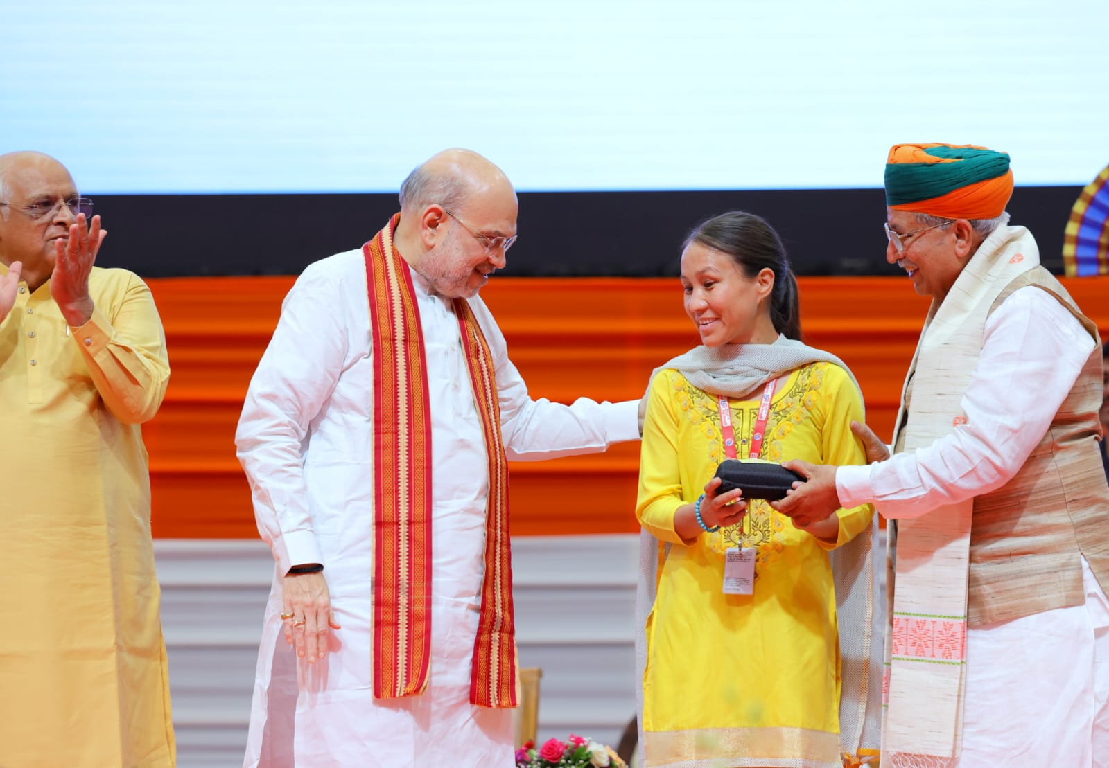 गांधीनगर| हिंदी दिवस के अवसर पर गुजरात की राजधानी गांधीनगर में आज पांचवां अखिल भारतीय राजभाषा सम्मेलन भव्य रूप से आयोजित हुआ। इस कार्यक्रम में केंद्रीय गृह एवं सहकारिता मंत्री अमित शाह ने मुख्य अतिथि के रूप में शिरकत की। इस अवसर पर गुजरात के मुख्यमंत्री भूपेन्द्र पटेल, केंद्रीय मंत्री अर्जुन राम मेघवाल एवं केंद्रीय गृह राज्य मंत्री बंडी संजय कुमार सहित कई गणमान्य अतिथि उपस्थित रहे।