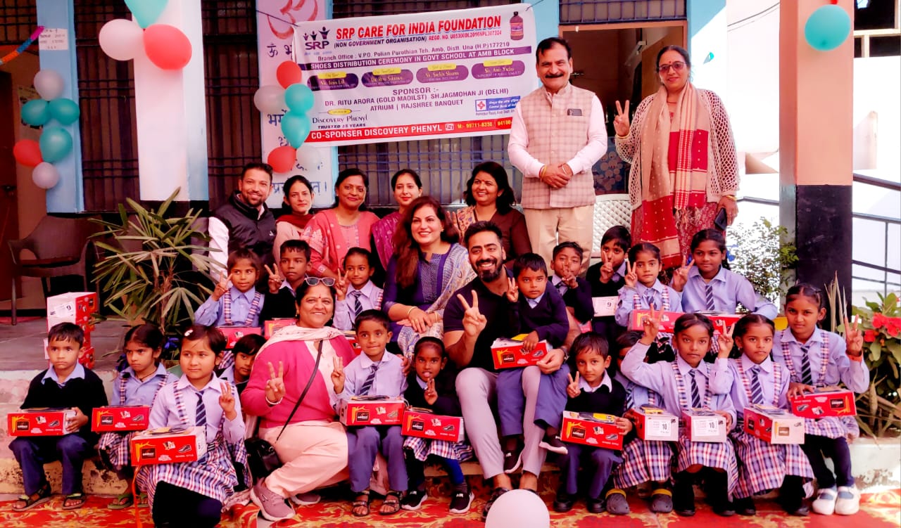 इस दौरान डॉ. रेणु सहरावत ने बच्चों को जीवन में लक्ष्य निर्धारण और सकारात्मक सोच के साथ आगे बढ़ने की प्रेरणा दी, उन्होंने एवं उपायुक्त ने बच्चों के साथ मिड डे मील भी साझा किया और विद्यालय के अध्यापकों द्वारा तैयार पौष्टिक भोजन की प्रशंसा की। एस.आर.पी. केयर फॉर इंडिया फाउंडेशन की निदेशक सुषमा शर्मा ने बताया कि इस अभियान के तहत शिक्षा खंड अंब के 16 प्राथमिक विद्यालयों के 1023 छात्रों को जूते वितरित किए जाएंगे। इस कार्यक्रम के दौरान बच्चों ने सांस्कृतिक प्रस्तुतियाँ दीं, जिनकी उपायुक्त ने सराहना की और इस अवसर पर फाउंडेशन के को-फाउंडर नरेंद्र शर्मा, सी.एच.टी. इन्द्र कौर, विद्यालय स्टाफ तथा अन्य गणमान्य व्यक्ति उपस्थित रहे।