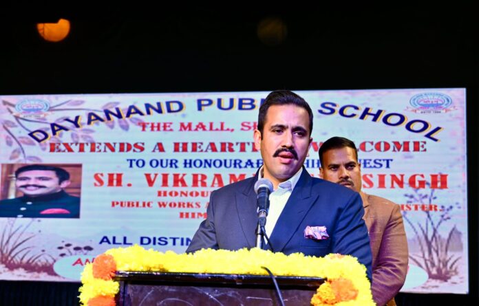 शिमला। हिमाचल प्रदेश के लोक निर्माण एवं शहरी विकास मंत्री विक्रमादित्य सिंह ने कहा कि शिक्षा व्यक्तित्व विकास और समाज की बेहतरी के लिए अत्यंत आवश्यक है, क्योंकि यह ज्ञान, कौशल और मूल्यों को बढ़ावा देती है। वे रविवार को गेयटी थियेटर, शिमला में दयानंद पब्लिक पाठशाला द्वारा आयोजित वार्षिक पारितोषिक वितरण समारोह में मुख्य अतिथि के रूप में सम्बोधित कर रहे थे। उन्होंने वर्षभर विभिन्न गतिविधियों में उत्कृष्ट प्रदर्शन करने वाले मेधावी छात्र-छात्राओं को बधाई एवं शुभकामनाएं दीं और कहा कि शिक्षा आर्थिक एवं सामाजिक प्रगति की कुंजी है। शिक्षा बच्चों को नशे से दूर रखती है और उन्हें जीवन में सही निर्णय लेने तथा चुनौतियों का सामना करने की क्षमता प्रदान करती है।