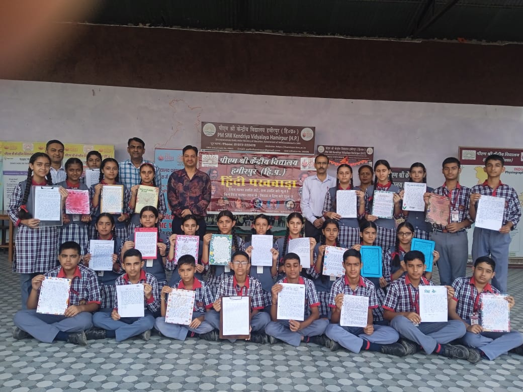 हमीरपुर| पीएम श्री केंद्रीय विद्यालय हमीरपुर में हिन्दी पखवाड़ा समारोह के अंतर्गत निबंध लेखन प्रतियोगिता का आयोजन उत्साहपूर्वक संपन्न हुआ। इस प्रतियोगिता में कक्षा नवीं के विद्यार्थियों ने सक्रिय भागीदारी करते हुए अपनी लेखन प्रतिभा का परिचय दिया, प्रतियोगिता के परिणामों में अरनीश (कक्षा नवीं) ने प्रथम स्थान अर्जित किया, जबकि वैष्णवी और कीर्ति लखनपाल (कक्षा नवीं) संयुक्त रूप से द्वितीय स्थान पर रहीं, वहीं अनन्या और आस्था (कक्षा नवीं) ने तृतीय स्थान प्राप्त किया।