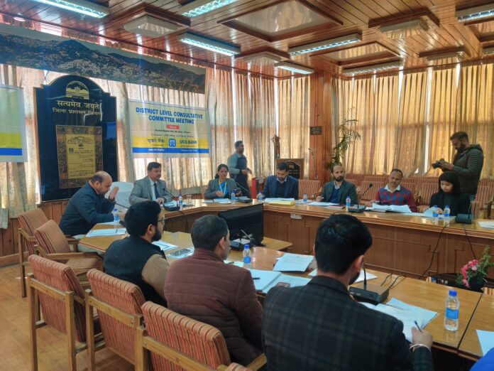 शिमला। जिला एवं प्रदेश के अग्रणी बैंक, यूको बैंक द्वारा बचत भवन- जिला उपायुक्त कार्यालय शिमला में वर्ष 2023-24 की वार्षिक ऋण योजना के अन्तर्गत दिसम्बर 2023  तक के परिणामों तथा उपलब्धियों की समीक्षा हेतु जिला स्तरीय सलाहकार (DLRC) एवं समन्वय समिति (DCC) तथा जिला स्तरीय समीक्षा समिति की बैठक का आयोजन किया गया। इसकी अध्यक्षता   माननीय  जिला उपायुक्त शिमला श्री अनुपम कश्यप IAS, ने की। अध्यक्षI महोदय ने कहा कि बैठक में जिले में कार्यरत सभी बैंकों द्वारा क्रियान्वित की जा रही सरकार की गरीबी उन्मूलन योजनाओं के अन्तर्गत हुई प्रगति तथा वार्षिक ऋण योजना 2023-24 के अंतर्गत दिसम्बर 2023 तक के लक्ष्यों तथा उपलब्धियों की समीक्षा की गई। बैठक का संचालन करते हुए भीमा दत्ता  अग्रणी जिला  मुख्य प्रबंधक शिमला ( LDM शिमला ) ने बताया किः