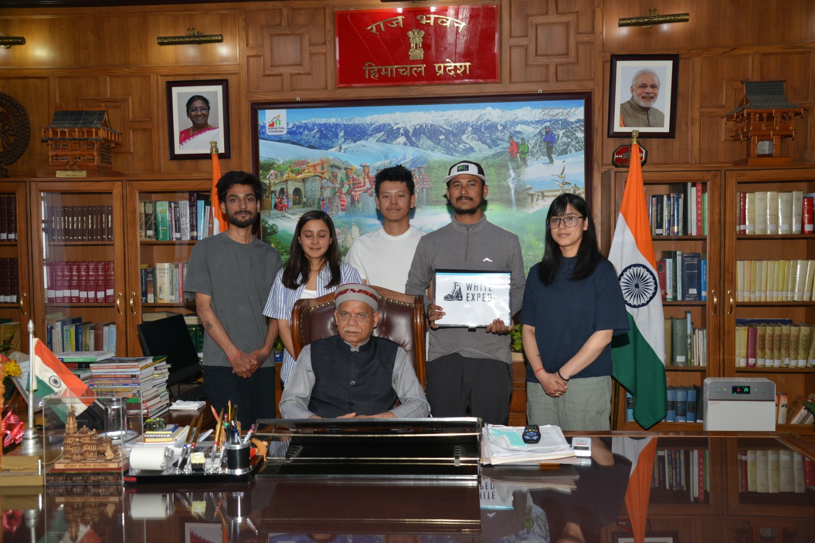 हिमाचल प्रदेश के लाहौल-स्पीति की 6303 मीटर ऊंची चाऊ चाऊ कांग निल्दा चोटी को फतह करने वाले प्रदेश के चार पर्वतारोहियों ने आज राजभवन में राज्यपाल श्री शिव प्रताप शुक्ल से शिष्टाचार भेंट की। इनमें शिमला जिले के राहुल, निकिता ठाकुर और ईशानी तथा मण्डी जिले के शुभम बिष्ट शामिल थे।