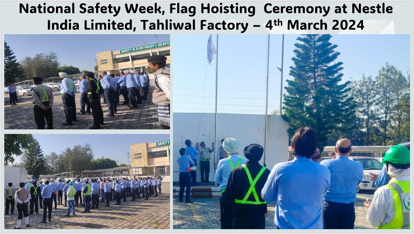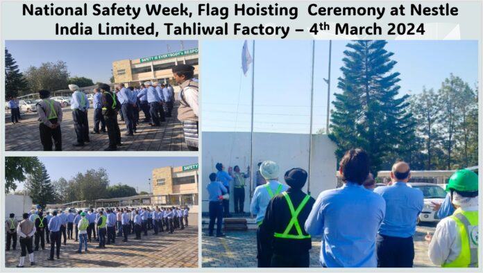 ऊना। नेस्ले इंडिया लिमिटेड टाहलीवाल में राष्ट्रीय सुरक्षा सप्ताह का शुभारंभ किया गया। यह राष्ट्रीय सुरक्षा सप्ताह 11 मार्च तक चलेगा जिसमें अलग-अलग सुरक्षा नियमों बारे प्रत्येक कर्मचारी को बताया जाएगा तथा नियमों का पालन करने के लिए प्रोत्साहित किया जाएगा।