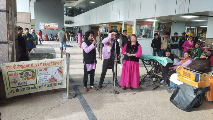 कुल्लू! सूचना एवं जनसंपर्क विभाग द्वारा अनुमोदित गीत संगीत कला मंच बंजार के कलाकारों ने बस आडा भुंतर और कुल्लू के बस स्टैंड में किया लोगों को नशे प्रति नाटक और गीत संगीत के जरिए किया लोगों को जागरुक उन्होंने बताया नशा कई प्रकार का होता है जैसे कि बीडी, सिगरेट, गुटका खैनी, अफीम, चिट्टा, भांग, आदि विभिन्न प्रकार का होता है उन्होंने इनके रोकथाम के बारे में भी लोगों को दी जानकारी! रमेश सराजी, टेला सोनी,बी,एस राणा,रीना,देवी भास्कर , नरेंद्र मेहता, अनिता भारती, देव माईकल आदि ने अहम भूमिका निभाई!
