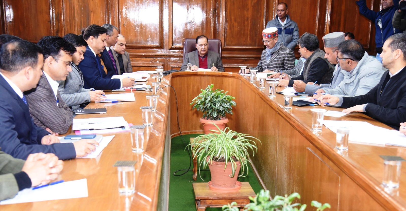 शिमला । पूर्वाह्न 11:30 बजे चौदहवीं विधान सभा के 11वें सत्र (बजट सत्र) के दृष्टिगत सुरक्षा व्यवस्था सम्बन्घित बैठक का आयोजन विधान सभा सचिवालय के मुख्य समिति कक्ष में किया गया जिसकी अध्यक्षता विधान सभा अध्यक्ष कुलदीप सिंह पठानियां द्वारा की गई। इस बैठक में प्रदेश सरकार के अतिरिक्त मुख्य सचिव,गृह, वन एवं राजस्व, के0के0पंत, पुलिस महानिदेशक, अशोक तिवारी, प्रबन्ध निदेशक, हि0प्र0 राज्य विद्युत निगम आदित्य नेगी, जिलाधीश शिमला, अनुपम कश्यप,महानिरीक्षक सतर्कता, संतोष पटियाल, उप-महानिरीक्षक दक्षिण रेंज, अंजुम आरा, विधान सभा सचिव, यशपाल शर्मा, निदेशक सूचना एवं जनसम्पर्क हि0प्र0 एवं मुख्यमंत्री महोदय के प्रधान निजि सचिव, राजीव कुमार, विशेष सचिव सामान्य प्रशासन, हरबंस सिंह ब्रेस्कॉन, प्रबन्ध निदेशक हि0प्र0 राज्य पर्यटन विकास निगम, राजीव कुमार-॥, आयुक्त नगर निगम शिमला, भूपेन्द्र कुमार अत्री, वरिष्ठ पुलिस अधीक्षक जिला शिमला, गौरव सिंह, निदेशक, स्वास्थ्य एवं परिवार कल्याण विभाग हि0प्र0, डॉ0 गोपाल बैरी तथा लोक निर्माण विभाग, लोक निर्माण विभाग विद्युत, एस0जे0पी0एन0एल0, होम गार्ड व कई अन्य विभागों के वरिष्ठ अधिकारी उपस्थित थे।