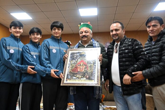 शिमला । शिक्षा मंत्री ठाकुर रामलाल स्वर्ण जयंती उत्कृष्ट राजकीय वरिष्ठ माध्यमिक विद्यालय जुब्बल पहुंचे, जहाँ पर उन्होंने ठाकुर रामलाल कन्या खेल छात्रावास की राष्ट्रीय और अंतरराष्ट्रीय स्तर पर उपलब्धि प्राप्त छात्राओं को उनके प्रदर्शन के लिए सम्मानित किया। उन्होंने जुब्बल की ख्याति धान्टा, कोटखाई की प्रीति और सिरमौर की रिया को चीन में आयोजित आईएसएफ अंडर-15 वर्ल्ड स्कूल वॉलीबॉल चैंपियनशिप में बेहतरीन प्रदर्शन के लिए सम्मानित किया। यह तीनो हॉस्टल की छात्राएं हैं।