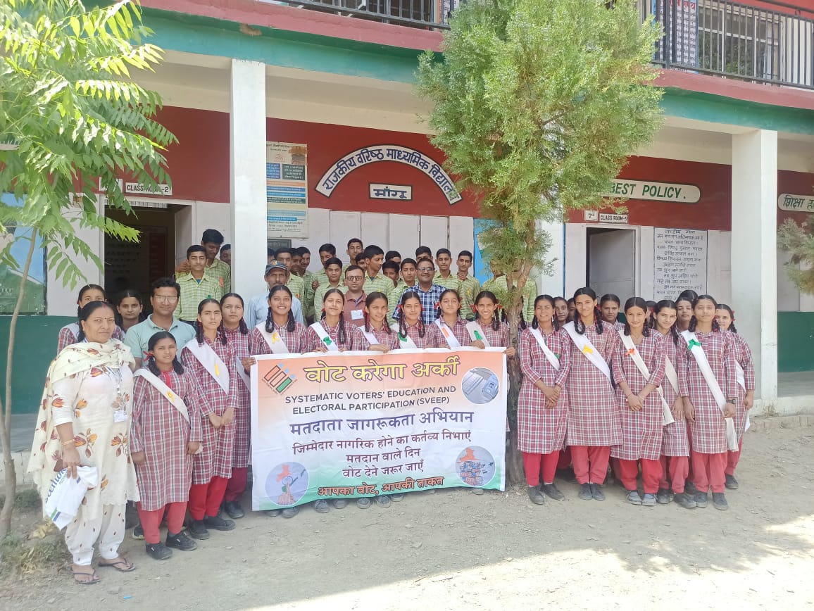 अर्की , विधानसभा निर्वाचन क्षेत्र की सुव्यवस्थित मतदाता शिक्षा एवं निर्वाचक सहभागिता कार्यक्रम (स्वीप) टीम ने मांगू, कशलोग, बांजण, बड़ोग, बंबीरा, सेरी व दानोंघाट मतदान केन्द्रों तथा गांवों में मतदाताओं तथा स्कूल के विद्यार्थियों को मतदाता जागरूकता अभियान के तहत जागरूक किया। स्वीप नोडल अधिकारी प्रो. यशपाल शर्मा तथा डॉ. हेमराज सूर्य ने बताया कि लोकसभा चुनाव में शत-प्रतिशत मतदान को सुनिश्चित बनाने व लोकतंत्र की मज़बूती के लिए स्थानीय लोगों, पंचायत प्रतिनिधियों, युवा व पात्र मतदाताओं से मतदान में सक्रिय भूमिका निभाने का आह्वान किया।