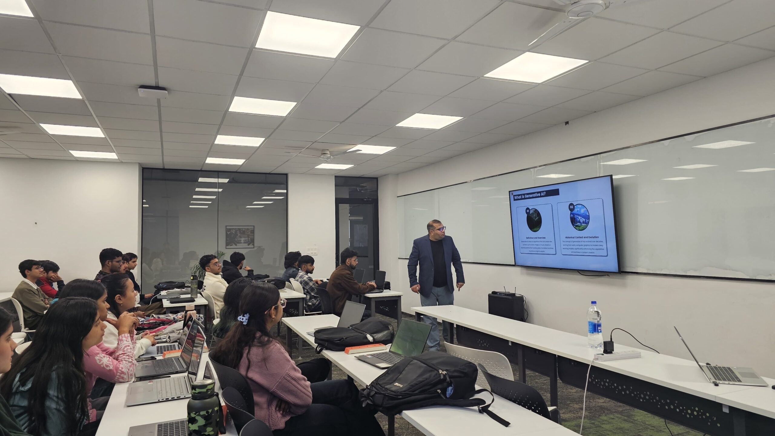 कार्यशाला का संचालन बाइटएक्सएल के डॉ. शमनेश शर्मा ने किया, जिन्होंने जनरेटिव एआई और स्वचालन के तेजी से विकसित हो रहे क्षेत्र पर एक ज्ञानवर्धक सत्र प्रस्तुत किया। उन्होंने छात्रों को चैटजीपीटी, गूगल जेमिनी, परप्लेक्सिटी, माइक्रोसॉफ्ट कोपायलट, नोटबुक एलएम, जैपियर और एन8एन सहित कई उन्नत एआई उपकरणों से परिचित कराया। लाइव प्रदर्शनों और व्यावहारिक अभ्यासों के माध्यम से, प्रतिभागियों ने विचारों को बुद्धिमान समाधानों में, संकेतों को उत्पादकता में और अवधारणाओं को स्वचालित कार्यप्रवाहों में परिवर्तित करना सीखा।